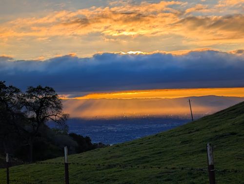 On my way down the mountain, just rounded a curve and met a dramatic sun-blast face: sunlight is penetrating through a dark cloud band. Its resilience shines through, hovering over a piece of the world down under. I wonder what it is like for the people directly under the sun while looking up?