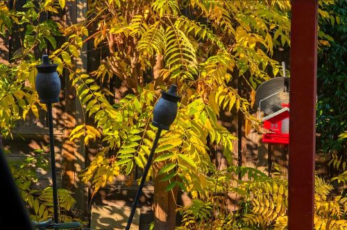 When the mind is in turmoil, contemplate on one thing. I looked outside our window, the Chinese Toon tree has already turned yellow, morning sun peeking through the golden leaves, next to the red bird feeder. Birds casually come and go. A moment of stillness cracks in with sunshine, what a beautiful sight! Everything is moving in silence without notice, stillness is within touch.