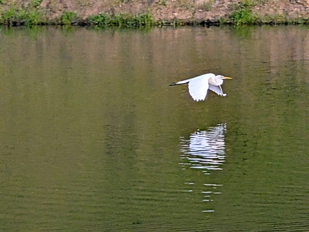 In my morning meditation, the image of an old photograph I took showed up in my mind: the water reflects the Great Egret, but doesn’t retain the image. That’s how it allows everything to happen, but as if nothing happened.