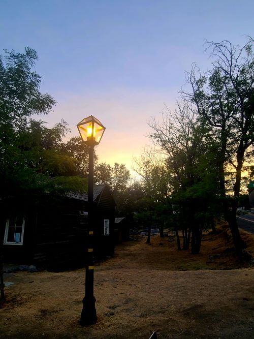 The dark street enticed me to walk further, it’s still somewhat lit up with those 1800’s style antique street lamps. We walked down with our flashlights, knowing, some parts of the street have no light. It’s interesting to walk on the total empty street with old buildings, you can just let your imagination fly free. Soon, we reached the dark corner where the road makes a hard turn, before it reaches street lights again. We started to shine the flash light around, front and back, farther into the dark. I wish my light can reach farther. I caught a cat running away from us, at least if a mountain lion is around, we wouldn’t be the cat’s biggest concern. With that thought in mind, I picked up my feet, marching forward. The not so long street seems much longer at night. I know there’s a rock path leading into back mountain on the side. I tried to zoom my vision to see if there’s any movement in the dark. I know my mind has run up and down the street several laps already. The thrill calls me to finish the street, to not turn back around, even just for my own sense of accomplishment. Finally we saw light, even people standing outside the theater at the end of the road chatting. I feel like back to civilization. We are safe. I made sure we reached the end of the main street, then turned around heading back. Having done it once makes it a little easier. Soon, we found our way back to the restaurant.