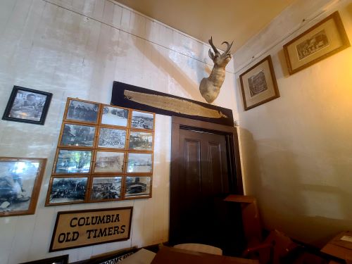 The second highlight is: I was able to experience Columbia after dark. We ate in the St. Charles Saloon, at the corner of Old Columbia and today’s Columbia. Many times we’ve seen people enjoying their food at the outside tables, inside was always a full house. It was originally built in1851, the property changed hands for $3000 in 1860. The inside décor is very rustic , mountain style, the rattle snake skin on the wall makes quite an impression. We sat at the outside table facing the main street of Columbia. This is the best seat in my opinion, where you can enjoy the street view of old Columbia while also feeling the vibes of a live bar without the noise. We sat down at the table, the attractive waitress dressed as if a 100 years ago, brought the menu. It’s a pizza restaurant, with beer and wine, only. So we picked a Columbian special pizza, house salad and a hard cider. That’s the best cider I’ve ever had, cool zest twist with a slight alcohol flavor for a hot Summer night. Their pizza is super cheesy, rich and meaty, I can understand why this is a local favorite. I love people watching, which is why I love this seat. The backside of the restaurant has two longer tables for bigger parties. I saw a big family, with many kids, the guy was dark skinned, skinny, long beard, but very fit, a classic image of a mountain man. The kids running around enjoying their weekend outing, like typical kids. The other side, which is the end of the main street, quieted down. When sun goes down, the street darkens down very quickly, and as the daylight fades away, so do the crowds. Maybe because it’s in the mountains. We are almost finished with our pizza, the waitress showed up, they close up pretty early. I just realized, the crowd inside the house is almost gone. I asked the waitress, “Is it safe to walk on the street at night? And any mountain lion sightings?” “No problem, if you just walk on the main street, but don’t go a couple blocks away. There has been mountain lion sightings there, it’s more active this year. I’ve seen it myself. You won’t miss hearing their cry, it sounds like a woman’s scream!” Off she goes to close up. I was still wondering what is like for a mountain lion screaming like a woman.