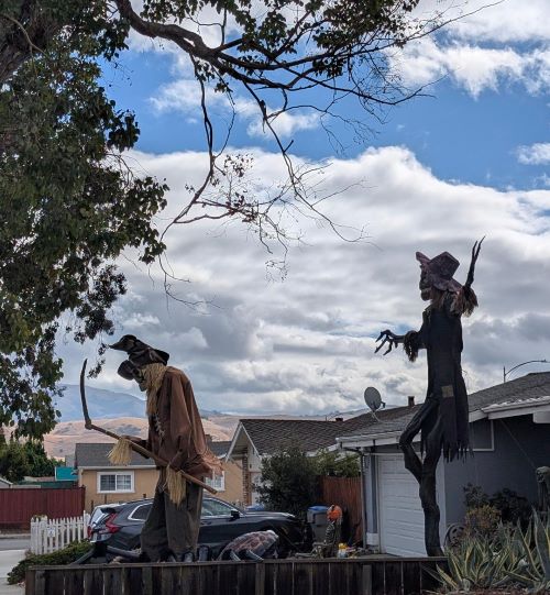 I didn’t wake up right this morning, so decided to jog it out. The house with a cat statue now has a real white cat posing the same way next to the statue. I wonder how does the cat feel about the statue. The house with the dramatic Halloween decorations changed again: the head of the witch is gone, makes quite a Halloween statement! Less is more!