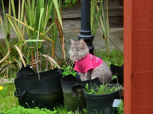 A sleepy cat is sunbathing on the fence, her favorite spot. Back on New Year’s Day, she had a pink jacket on, stunned me with her new look. Now whenever I see her without the pink jacket, I always get tickled by her being naked without even knowing it.