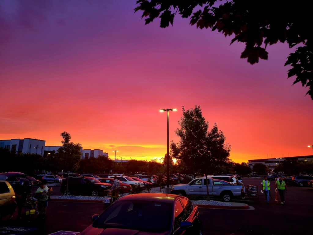 This was yesterday’s sunset at the Costco parking lot. When we were done shopping, walking out, saw so many people stopped and looking up, admiring the burning sky, some taking out cellphones to grab the shot. Originally I was hesitant, there’s no scenery, nor landmarks to make it dramatic, it’s just a busy parking lot, but this is real, as real as it gets. Life doesn’t offer reservations, it’s beautiful as is!