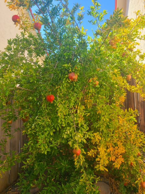 After a long, exhausting day, I finally was able to sit in the yard to relax into the beautiful summer night. I noticed the first pomegranate on our tree was so ripe it even popped open, exposing all the inside red seeds. I picked it up to give myself a treat. I opened the pomegranate and saw those little shining red seeds, like precious ruby stones, crystal clear and full of juice. So delicate, crowded, snuggled together in that tight space, living in their chambers divided by the yellow skin.