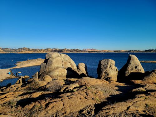 Jet skiers, wind surfers, laughter flying across the water, camp site music and barbecue immersed with summer heat at Millerton Lake, in the Foothills of the Sierras.