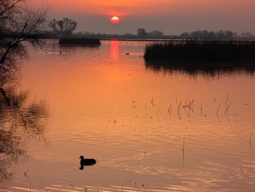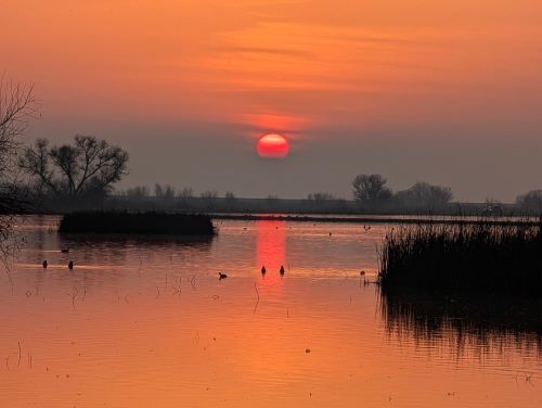 We were rewarded with a gorgeous sunset, fog disappears just in time. The sun glorious like an over-ripe yoke, spilling over into water, immersing the entire landscape into a glowing canvas; the bold tree branches fit in perfectly, adding the raw touch of winter. Water fowl randomly glide into the marsh, that’s the animation of the painting. With the rhythmic sound of thousands of Ross Geese, ebbing and flowing, it reminds me life is on-going no matter what. The pre-Snow Moon is hanging over the tall trees, waiting for her turn to shine. A long term resident owl flies in and out, before settling down for the night.