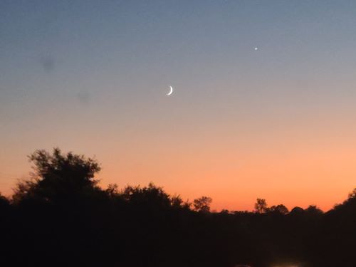 With that dream we left the park. It’s a new moon, the crescent shaped moon hanging on the magenta colored night sky, clean like a silhouette, as if hand-painted in the sky. I’ve seen an Indian painting before: under the crescent moon, an elegant Indian girl sitting against the canyon, looking up at the moon, her face glows like the new moon. That image is so deep in my mind that whenever I see the new moon, I would think of the moon-like Indian girl chanting to the moon in the deep canyon, maybe grinding acorns in Fall after the harvest.